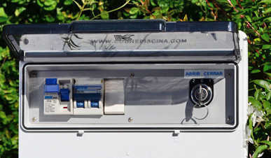 Todas nuestras cubiertas estan equipadas con una bomba especialmente diseñada para cubiertas de piscina. Esta bomba desagota automaticamente el agua de lluvia que pueda acumularse sobre la misma.